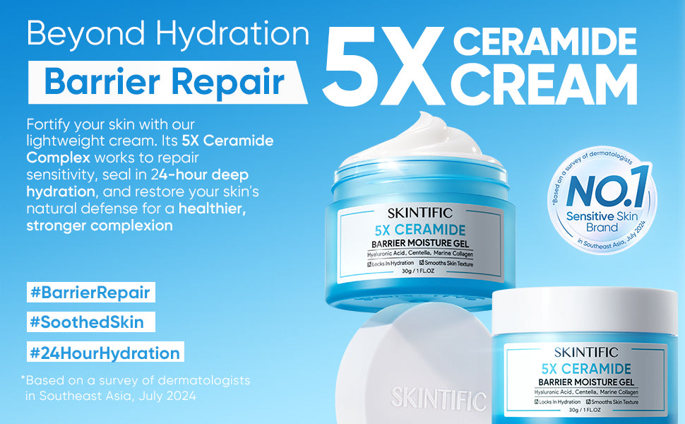 Formulated with 5 different types of Ceramides (5X Ceramide) which are CERAMIDE NP, CERAMIDE EOP, CERAMIDE AP, CERAMIDE AS, CERAMIDE NS that works great combined to repair and maintain skin natural barrier