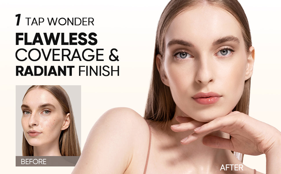 Instantly covers imperfections with a single tap for a smooth, airbrushed finish.