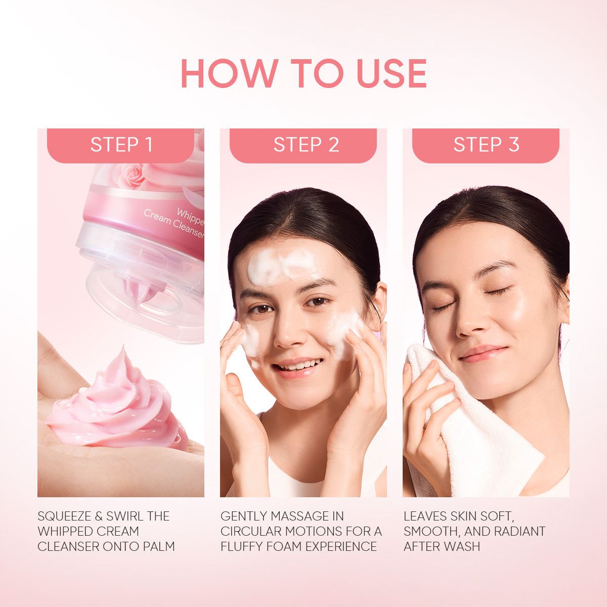 Damask Rose Brightening Whipped Cream Cleanser is a brightening whipped foam cleanser designed to turn daily cleansing into a soft, comforting skincare ritual. Its ultra-soft whipped cream texture transforms into a cloud-like foam cleanser that cushions the skin while gently lifting away makeup, excess oil, sunscreen, and daily impurities.